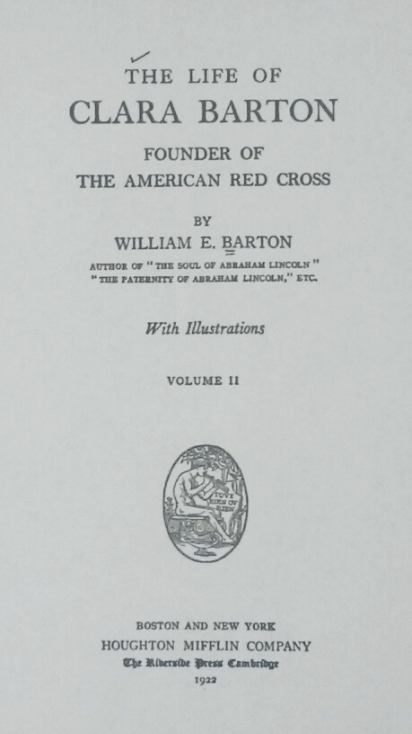 Title Page of 'The Life of Clara Barton' by William Eleazar Barton