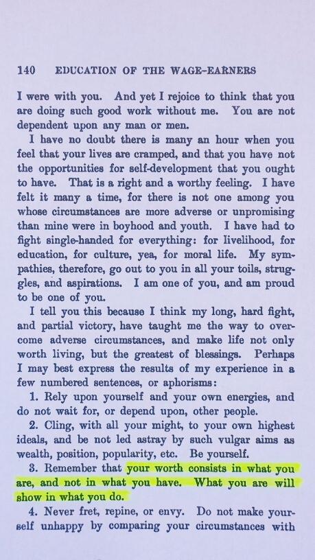 Here is the quote found in The Education of the Wage-Earners by Thomas Davidson published posthumously in 1904 and edited by Charles M. Bakewell.